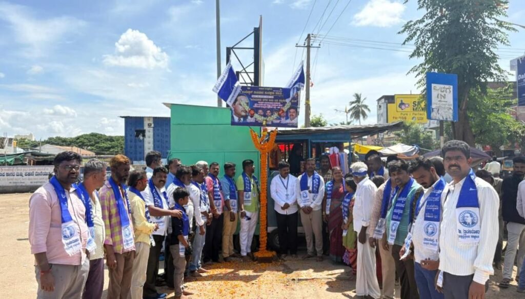 ನಗರದ ಖಾಸಗಿ ಬಸ್ ನಿಲ್ದಾಣದ   ಆವರಣದಲ್ಲಿ ಸಮಿತಿಯ ತಾಲ್ಲೂಕು ಶಾಖೆ ನೇತೃತ್ವದಲ್ಲಿ ಹಮ್ಮಿಕೊಳ್ಳಲಾಗಿದ್ದ ಕಾರ್ಯಕ್ರಮದಲ್ಲಿ ಬೀದಿಬದಿ ವ್ಯಾಪಾರಿಗಳ ನಾಮಫಲಕ ಉದ್ಘಾಟಿಸಿ ಅವರು ಮಾತನಾಡಿದರು.