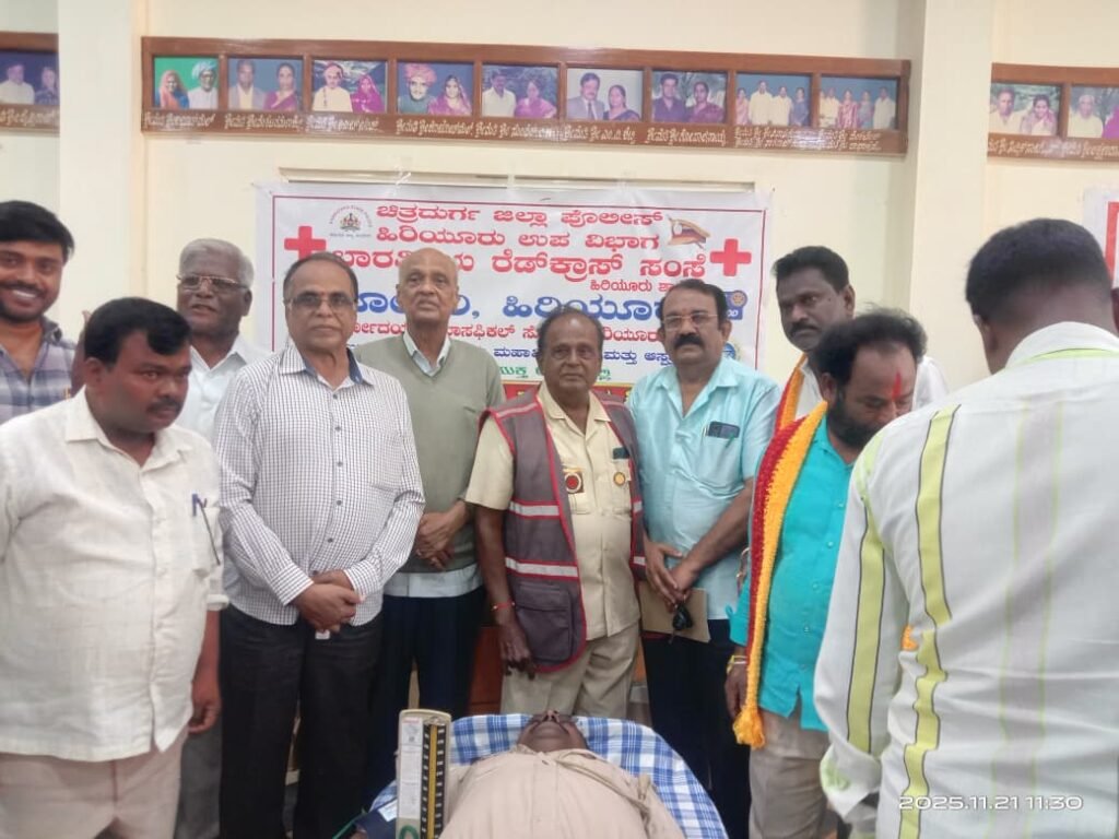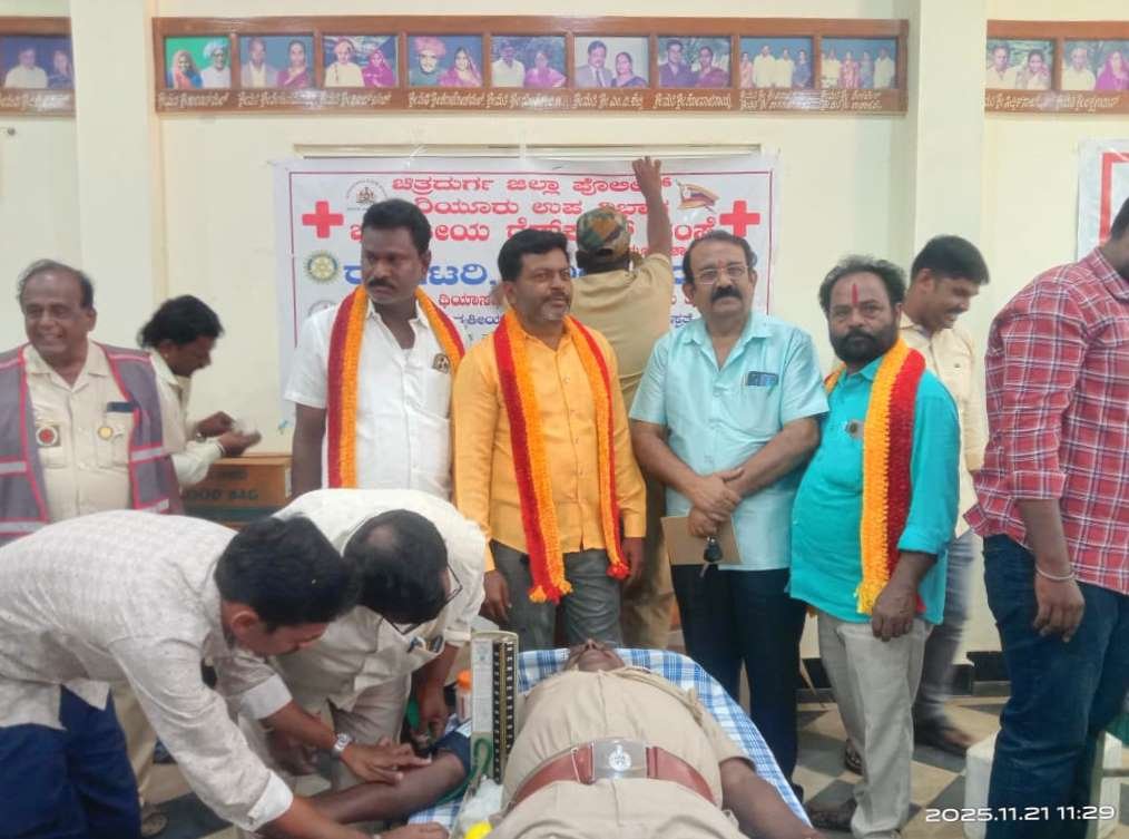 ನಗರದ ರೋಟರಿ ಸಭಾಭವನದಲ್ಲಿ ಚಿತ್ರದುರ್ಗ ಜಿಲ್ಲಾ ಪೋಲೀಸ್ ಹಿರಿಯೂರು ಉಪವಿಭಾಗ, ರೆಡ್ ಕ್ರಾಸ್ ಸಂಸ್ಥೆ, ರೋಟರಿ ಸಂಸ್ಥೆ, ಸರ್ವೋದಯ ಥಿಯೋಸಫಿಕಲ್ ಸೊಸೈಟಿ ಹಿರಿಯೂರು, ಬಸವೇಶ್ವರ ವೈದ್ಯಕೀಯ ಮಹಾವಿದ್ಯಾಲಯ ಹಾಗೂ ಆಸ್ಪತ್ರೆ ಇವರುಗಳ ಸಂಯುಕ್ತಾಶ್ರಯದಲ್ಲಿ ಹಮ್ಮಿಕೊಳ್ಳಲಾಗಿದ್ದ ಸ್ವಯಂಪ್ರೇರಿತ ರಕ್ತದಾನ ಶಿಬಿರವನ್ನು ಉದ್ಘಾಟಿಸಿ, ನಂತರ ಅವರು ಮಾತನಾಡಿದರು.