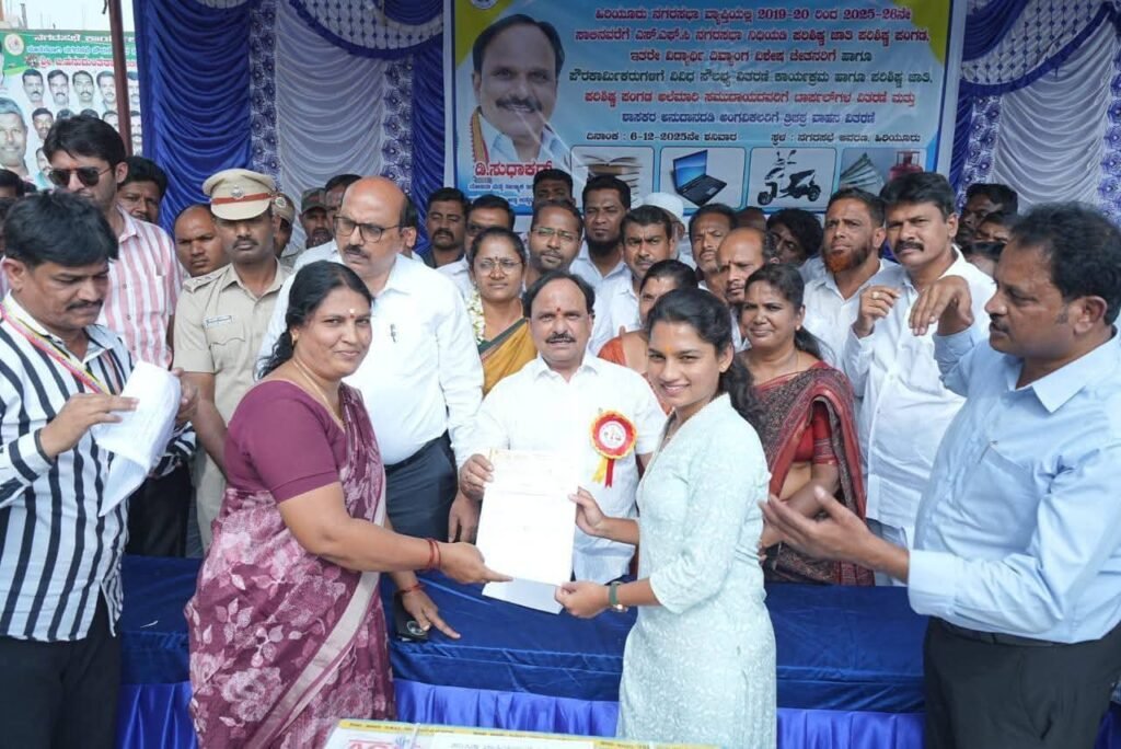 ನಗರದ ನಗರಸಭೆ ಸಭಾಂಗಣದಲ್ಲಿ ನಗರಸಭೆಯ ಎಸ್.ಎಫ್.ಸಿ. ನಿಧಿಯಡಿ ಪರಿಶಿಷ್ಟ ಜಾತಿ, ಪಂಗಡ ಹಾಗೂ ಇತರೆ ಸಮುದಾಐದ ವಿದ್ಯಾರ್ಥಿಗಳು, ಅಂಗವಿಕಲರು, ಪೌರಕಾರ್ಮಿಕರು ಅಲೆಮಾರಿ ಸಮುದಾಯದವರಿಗೆ 2019-2020ರಿಂದ 2025-26ನೇ ಸಾಲಿನವರೆಗಿನ ವಿವಿಧ ಸೌಲಭ್ಯಗಳನ್ನು ವಿತರಿಸಿ ಅವರು ಮಾತನಾಡಿದರು.