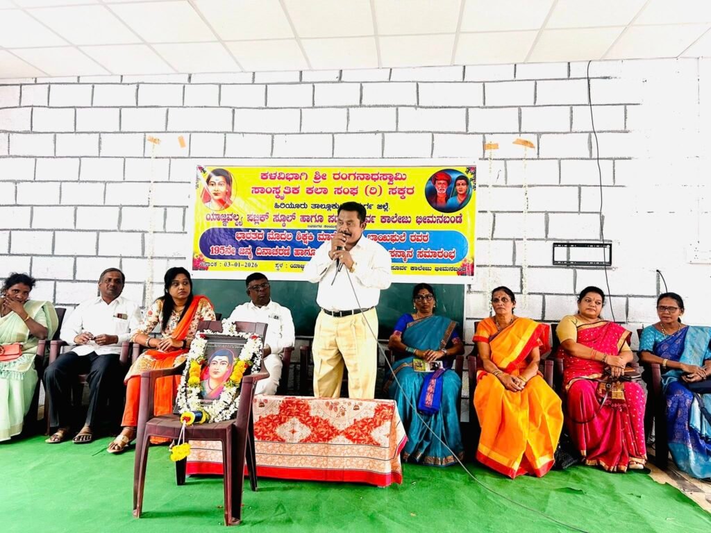 ತಾಲ್ಲೂಕಿನ ಭೀಮನಬಂಡೆ ಗ್ರಾಮದ ಯಜ್ಞವಲ್ಕ್ಯ ಪಬ್ಲಿಕ್ ಶಾಲೆ ಸಭಾಂಗಣದಲ್ಲಿ ಕಳವಿಭಾಗಿ ಶ್ರೀ ರಂಗನಾಥಸ್ವಾಮಿ ಸಾಂಸ್ಕೃತಿಕ ಕಲಾ ಸಂಘ (ರಿ) ಸಕ್ಕರ, ಹಾಗೂ ಯಜ್ಞವಲ್ಕ್ಯ ಪಬ್ಲಿಕ್ ಸ್ಕೂಲ್ ಮತ್ತು ಪದವಿ ಪೂರ್ವ ಕಾಲೇಜು – ಭೀಮನಬಂಡೆ ಆಶ್ರಯದಲ್ಲಿ ಹಮ್ಮಿಕೊಳ್ಳಲಾಗಿದ್ದ ಭಾರತದ ಮೊದಲ ಶಿಕ್ಷಕಿ ಮಾತೆ ಸಾವಿತ್ರಿಬಾಯಿ ಪುಲೆ ಅವರ 195 ನೇ ಜನ್ಮದಿನಾಚರಣೆ ಹಾಗೂ ಮಹಿಳಾ ಸಾಧಕರಿಗೆ ಸನ್ಮಾನ ಸಮಾರಂಭ ಕಾರ್ಯಕ್ರಮವನ್ನು ಉದ್ಘಾಟಿಸಿ ಅವರು ಮಾತನಾಡಿದರು.