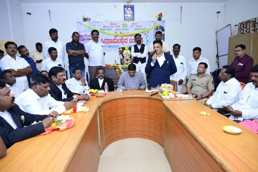 ನಗರದ ತಾಲ್ಲೂಕು ಕಚೇರಿ ಸಭಾಂಗಣದಲ್ಲಿ ರಾಷ್ಟ್ರೀಯ ಹಬ್ಬಗಳ ಸಮಿತಿ, ತಾಲ್ಲೂಕು ಆಡಳಿತ ಮತ್ತು ತಾಲ್ಲೂಕು ಪಂಚಾಯತ್ ನಗರಸಭೆ ಹಾಗೂ ಕನ್ನಡ ಮತ್ತು ಸಂಸ್ಕೃತಿ ಇಲಾಖೆ ಇವರ ಸಂಯುಕ್ತಾಶ್ರಯದಲ್ಲಿ ಹಮ್ಮಿಕೊಳ್ಳಲಾಗಿದ್ದ ಶ್ರೀಶಿವಯೋಗಿಸಿದ್ಧರಾಮೇಶ್ವರರವರ 854ನೇ ಜಯಂತಿ ಕಾರ್ಯಕ್ರಮದ ಅಧ್ಯಕ್ಷತೆಯನ್ನು ವಹಿಸಿ, ನಂತರ ಅವರು ಮಾತನಾಡಿದರು.