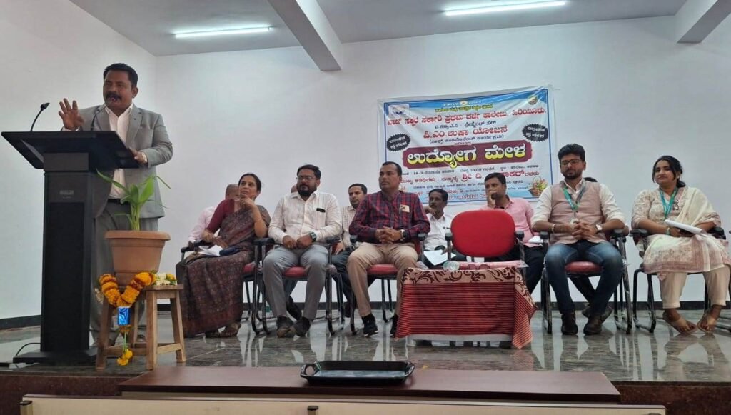 ನಗರದ ವಾಣಿ ಸಕ್ಕರೆ ಸರ್ಕಾರಿ ಪ್ರಥಮ ದರ್ಜೆ ಕಾಲೇಜಿನಲ್ಲಿ ಪ್ಲೇಸ್ಮೆಂಟ್ ಸೆಲ್, ಹಾಗೂ ಪಿ.ಎಂ.ಉಷಾ ಯೋಜನೆ ಸಾಫ್ಟ್ ಕಾಂಪೊನೆಂಟ್ ಕಾರ್ಯಕ್ರಮ ಅಡಿಯಲ್ಲಿ ಹಮ್ಮಿಕೊಳ್ಳಲಾಗಿದ್ದ ಉದ್ಯೋಗ ಮೇಳ ಕಾರ್ಯಕ್ರಮವನ್ನು ಉದ್ಘಾಟಿಸಿ, ಅವರು ಮಾತನಾಡಿದರು.