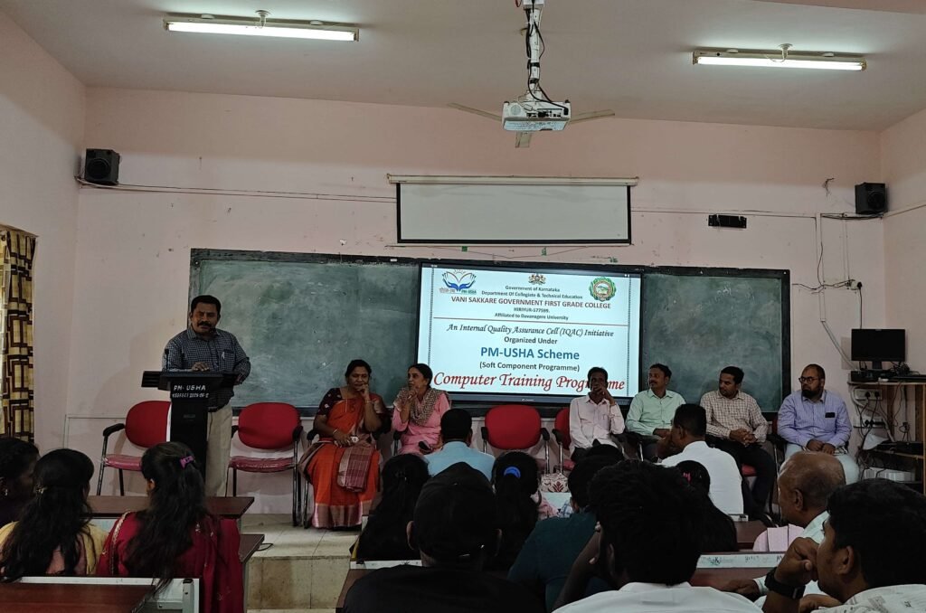 ನಗರದ ವಾಣಿ ಸಕ್ಕರೆ ಸರ್ಕಾರಿ ಪ್ರಥಮ ದರ್ಜೆ ಕಾಲೇಜಿನಲ್ಲಿ ಪಿ.ಎಂ.ಉಷಾ ಯೋಜನೆ ಅಡಿಯಲ್ಲಿ ವಿದ್ಯಾರ್ಥಿಗಳಿಗೆ ಹಮ್ಮಿಕೊಳ್ಳಲಾಗಿದ್ದ ಕಂಪ್ಯೂಟರ್‌ ತರಬೇತಿ ಕಾರ್ಯಕ್ರಮವನ್ನು ಉದ್ಘಾಟಿಸಿ, ಕಾರ್ಯಕ್ರಮಕ್ಕೆ ಚಾಲನೆ ನೀಡಿ, ಅವರು ಮಾತನಾಡಿದರು.