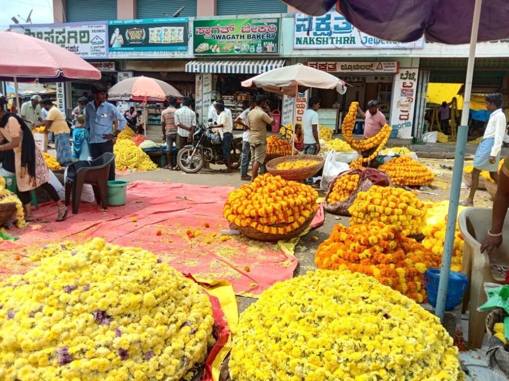 ಗೌರಿ-ಗಣೇಶ ಹಬ್ಬ ಮುಗಿದ ನಂತರ ಪಾತಾಳಕ್ಕೆ ಕುಸಿದಿದ್ದ ಹೂವಿನ ಬೆಲೆ ಈಗ ಚೇತರಿಸಿಕೊಂಡು ಹೂವಿನ ಬೆಲೆ ಗಗನಕ್ಕೆ ಏರಿಕೆಯಾಗುತ್ತಿದೆ. ದಸರಾ ಹಬ್ಬ ಇನ್ನು ಒಂದು ದಿನ ಇರುವಾಗಲೇ ನಗರದಲ್ಲಿ ಹೂವು, ಹಣ್ಣು, ತರಕಾರಿಗಳು ಬಾಳೆಕಂಬ, ಪೂಜಾಸಾಮಾಗ್ರಿಗಳ, ಬೆಲೆ ಸಾರ್ವಜನಿಕರಿಗೆ ದುಬಾರಿಯಾಗಿ ಏರಿಕೆಯಾಗಿದ್ದರೂ ನಗರದ ನಾಗರೀಕರಲ್ಲಿ ಹಬ್ಬದ ಸಡಗರಸಂಭ್ರಮ ಕಡಿಮೆಯಾಗಿಲ್ಲ, ನಗರದಲ್ಲಿ ಹಬ್ಬದ ಸಾಮಾಗ್ರಿಗಳನ್ನು ಕೊಳ್ಳಲು ಮುಗಿಬಿದ್ದಿರುವ ದೃಶ್ಯ ಸರ್ವೇಸಾಮಾನ್ಯವಾಗಿತ್ತು. ಈ ನವರಾತ್ರಿಯ ಆಯುಧ ಪೂಜೆ ಹಬ್ಬದಲ್ಲಿ ಜನರು ತಮ್ಮ ವಾಹನಗಳು ಆಯುಧಗಳು, ನಿತ್ಯಬಳಕೆಯ ಉಪಕರಣಗಳು ಸೇರಿದಂತೆ ಅಂಗಡಿಮುಂಗಟ್ಟುಗಳನ್ನು ತಳಿರು ತೋರಣಗಳಿಂದ ಹಾಗೂ ಬಾಳೆಕಂದುಗಳಿಂದ ಅಲಂಕರಿಸಿ, ಲಕ್ಷ್ಮೀ, ಸರಸ್ವತಿ, ಗಣಪತಿಗೆ ಪೂಜೆ ಸಲ್ಲಿಸಿದ ನಂತರ ಕುಂಬಳಕಾಯಿಗೆ ಕುಂಕುಮ ತುಂಬಿ ಅಂಗಡಿಗಳ ಮುಂದೆ ಹಾಗೂ ವಾಹನಗಳ ಮುಂದೆ ಒಡೆಯುವುದು ಒಂದು ಸಂಪ್ರದಾಯವಾಗಿದ್ದು, ಈ ದಸರಾ ಹಬ್ಬದಲ್ಲಿ ಬೂದುಕುಂಬಳಕಾಯಿ ಜನರ ಬೇಡಿಕೆಯ ಮುಖ್ಯವಸ್ತುವಾಗಿದೆ.