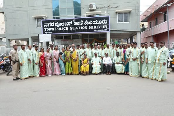 ನಗರದ ಪೊಲೀಸ್ ಠಾಣೆಯ ಸಿಬ್ಬಂದಿಗಳು ದಸರಾ ಹಬ್ಬದ ಅಂಗವಾಗಿ ಸಾಂಪ್ರದಾಯಿಕ ಉಡುಗೆಯಲ್ಲಿ ಭಾಗವಹಿಸಿ ಸಂಭ್ರಮಿಸಿದರು. ಠಾಣೆಯ ಸಿ.ಪಿ.ಐ. ರಾಘವೇಂದ್ರ ಅವರ ನೇತೃತ್ವದಲ್ಲಿ ಸಿಬ್ಬಂದಿಗಳು ಉಡುಗೆಯ ವೈವಿಧ್ಯತೆಯೊಂದಿಗೆ ಹಬ್ಬದ ಸಂತಸವನ್ನು ಹಂಚಿಕೊಂಡರು.